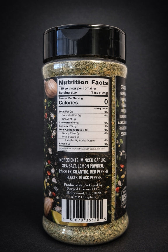 Ingredients: Parsley, Cilantro, Garlic, Chili Flakes, Black Pepper, Lemon Powder, Sea Salt.