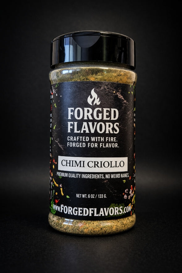 Inspired by the bold, herbaceous flavors of traditional chimichurri from Uruguay & Argentina, Chimi Criollo is Forged Flavors’ dry take on the iconic sauce. This small-batch blend bursts with vibrant parsley, garlic, chili flakes, cilantro, and tangy red pepper, designed to come alive with oil, vinegar, or a squeeze of lemon.