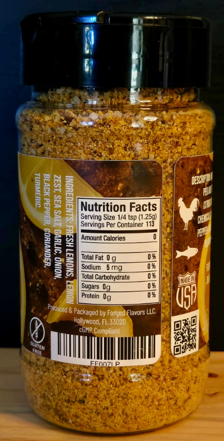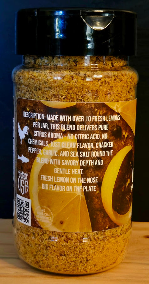 We skip the citric acid and fake stuff—opting instead for real dehydrated lemon peel, lemon zest, and a touch of herbs and garlic that amplify both the brightness and depth of flavor. The result is a seasoning that’s tangy, sharp, peppery, and wildly versatile.